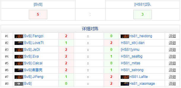 这两个队最终的比方定格在了5比3,这是我赛前没有想到的,因为在我心目中SVS是一个强大无比的战队,由此看来hs812队也是一个不容忽视的战队,能在svs身上取得三分的傲人成绩,他们这场比赛虽败犹荣,我也希望有人来,有战队能站出来打破SVS对STL冠军的垄断地位。