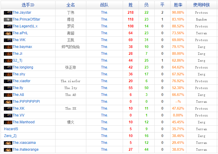 参赛选手